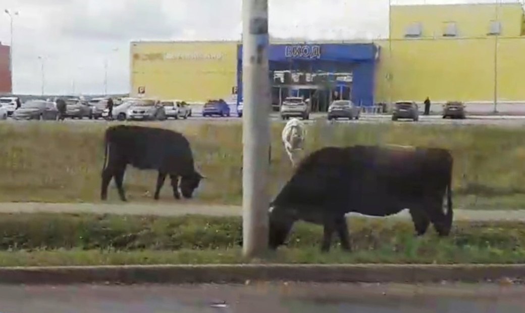 В Калуге урбанизированные буренки снова вышли на проезжую часть