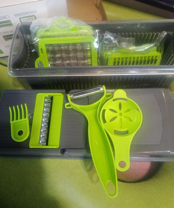 - Многофункциональность: Овощерезка идеально подходит для нарезки фруктов и овощей, позволяя готовить блюда с легкостью и быстро. Прибор помогает создавать закуски, такие как чипсы из картофеля, используя минимальное количество времени и усилий.