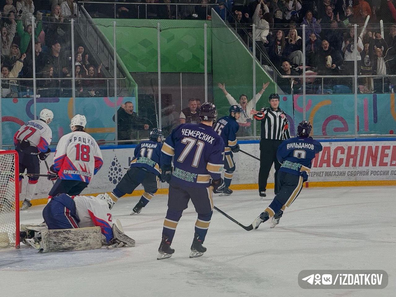 В концовке игры команды обменялись заброшенными шайбами. Новому вратарю «Калуги» Владимиру Войтюку совсем немного не хватило до «сухаря» в дебютном матче – «Брянск» поразил ворота с добивания. В составе нашей команды отличился Илья Китанин.