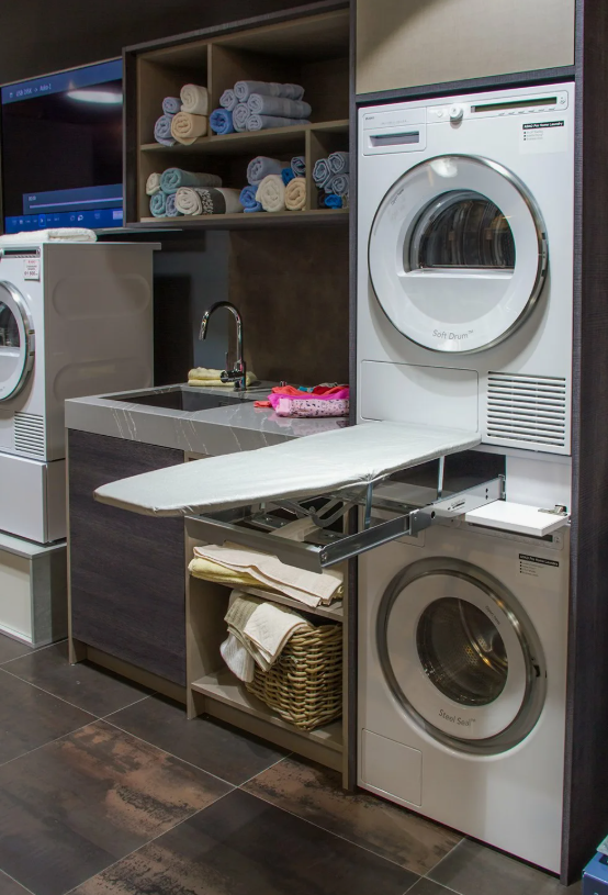 - Комфорт и удобство. Сушильная машина, находящаяся на уровне груди, делает процесс загрузки и выгрузки белья более удобным, избавляя от необходимости наклоняться.