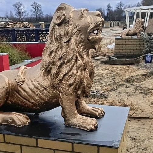 Их убирали с набережной, чтобы отреставрировать на Сукремльском чугунолитейном заводе. Сейчас обновленных и сияющих львов вернули обратно на Людиновскую набережную.