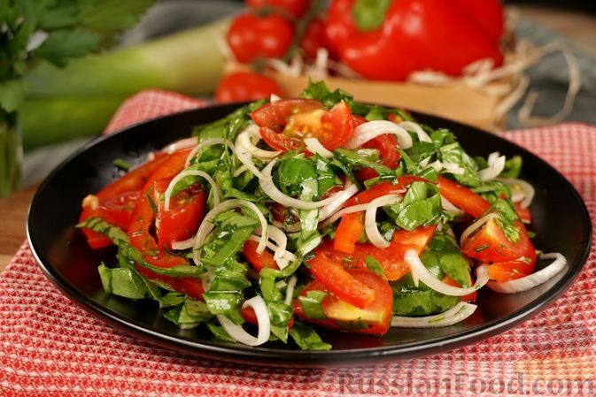 Тем, кто придерживается принципов здорового питания, понравится салат с помидорами, сладким перцем и шпинатом. Всего несколько ингредиентов, оливковое масло и щепотка соли станут основой для быстрого и легкого блюда. Это не только вкусный, но и по-настоящему полезный вариант для утреннего перекуса или легкого ужина.