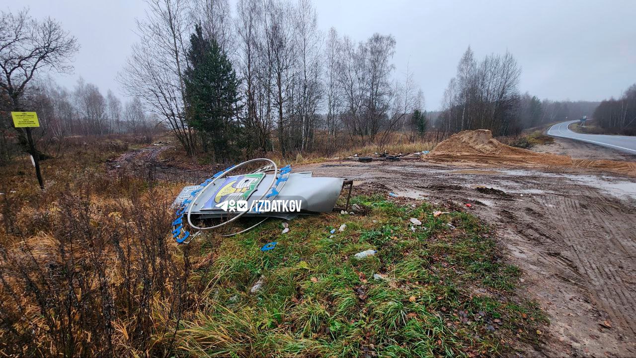 Сейчас же знак, и вовсе, валяется на обочине. Сдуло его ветром или кто-то сбил на авто — не ясно. К слову, знак придется в скором времени снова обновлять — заменить слово «район» на «округ».