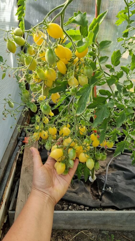У этих томатов интересные плодовые кисти, которые напоминают грозди винограда. При цветении, даже при высоких температурах, большинство цветков удавалось сохранить, что способствовало высокой завязываемости плодов.