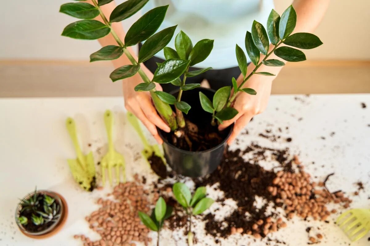 Пересадка замиокулькаса — это не просто перемещение в новый горшок. К этому процессу нужно подойти со всей серьезностью. Вот основные шаги, которые важно учитывать: