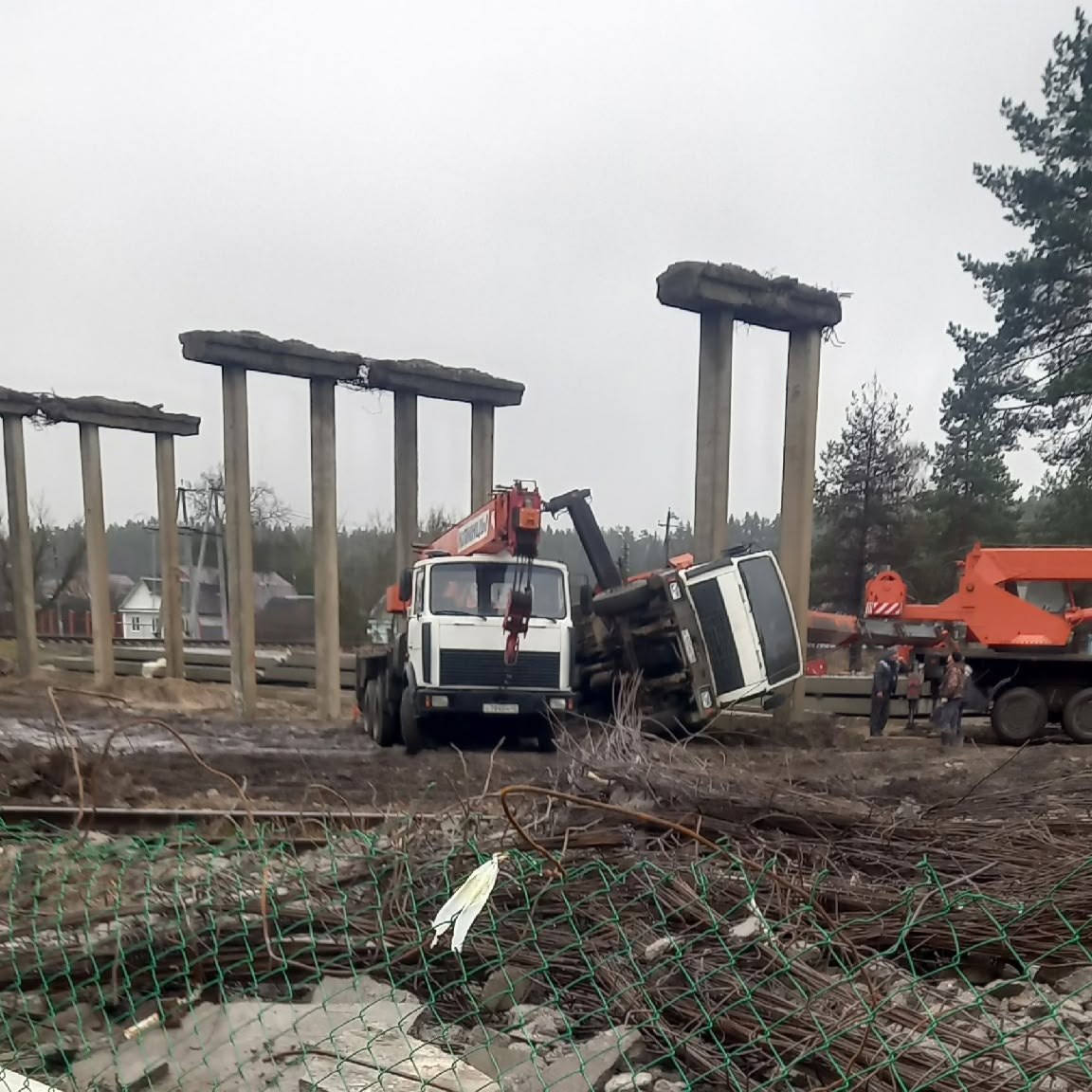 На улице Куйбышева, где реконструируют путепровод, опрокинулся автокран. Подробности не уточняются.
