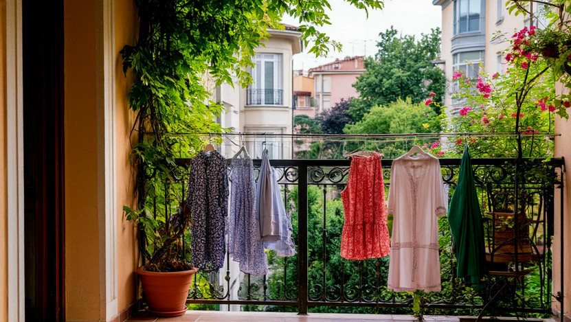 Когда дело касается сушки на балконе или на улице, важно помнить несколько простых правил. Цветные и темные вещи следует вешать изнанкой наружу. Это поможет защитить их от выцветания под солнечными лучами. Белые вещи, наоборот, лучше развешивать лицевой стороной к солнцу: естественное ультрафиолетовое освещение освежит их. Важно также снимать белье до вечера, чтобы избежать росы и пыльцы, особенно в период цветения растений.