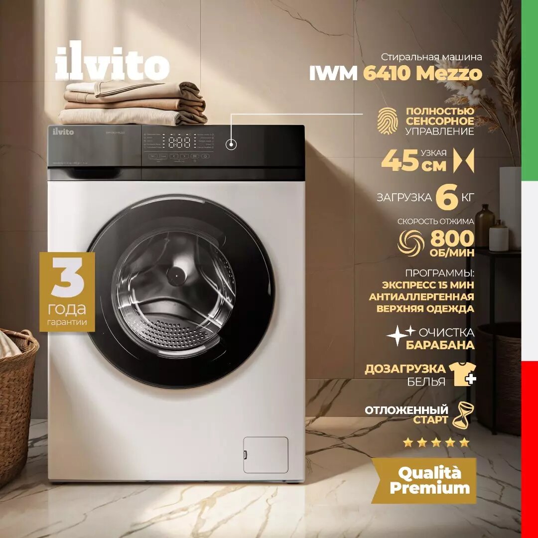 Для семьи из одного-двух человек в большинстве случаев подойдут машины с загрузкой 5-6 кг. Такой объем идеален для рутинной стирки, включая рубашки и полотенца. Например, модель DeLonghi IWM 6410 MEZZO компактна и отлично справляется с задачами без потерь качества.