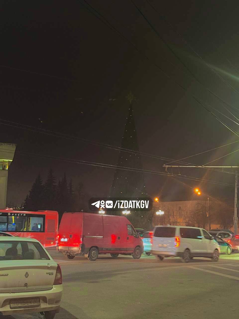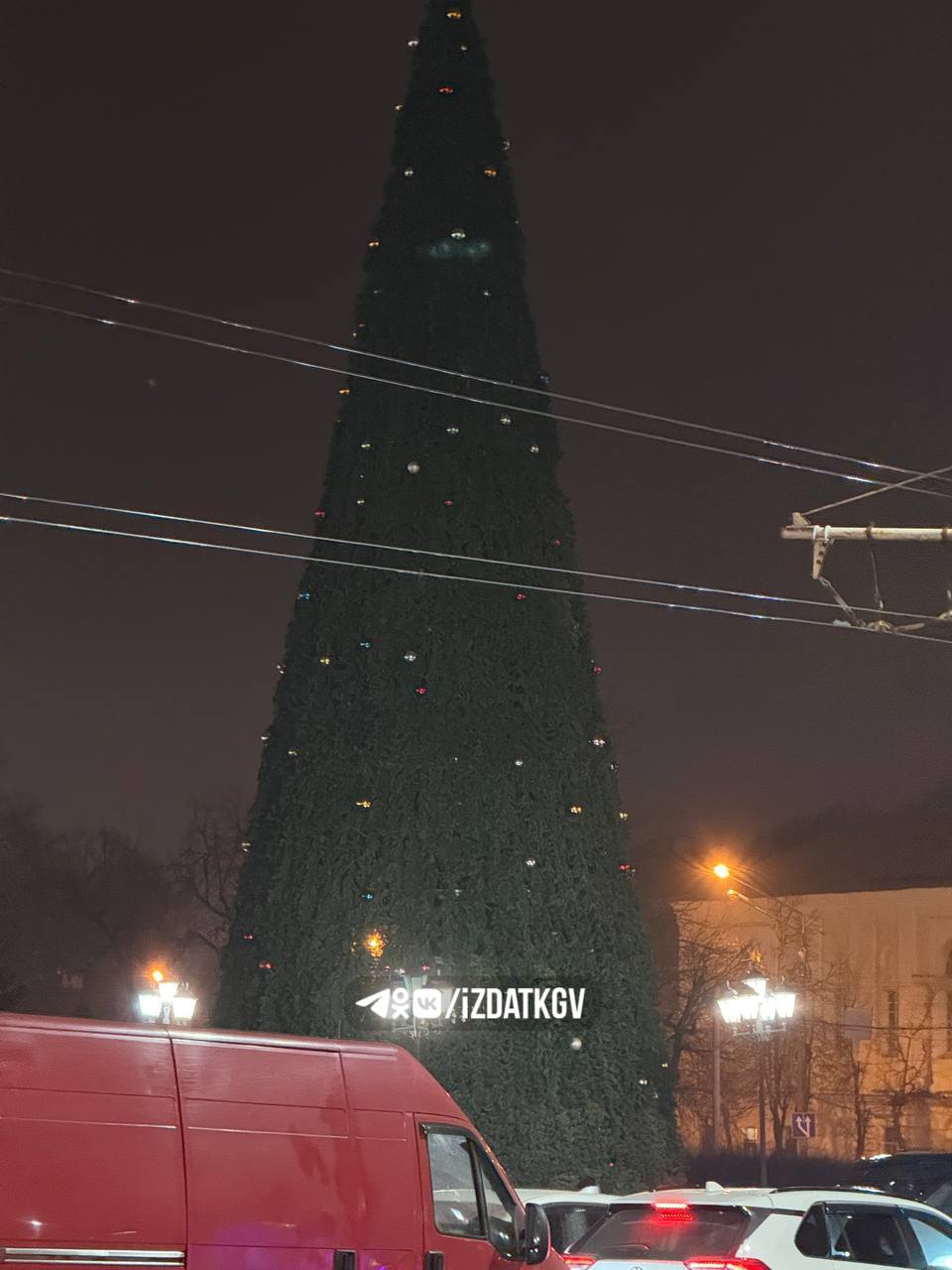 Традиционно дерево поставили между зданием администрации и будущим катком на площади.