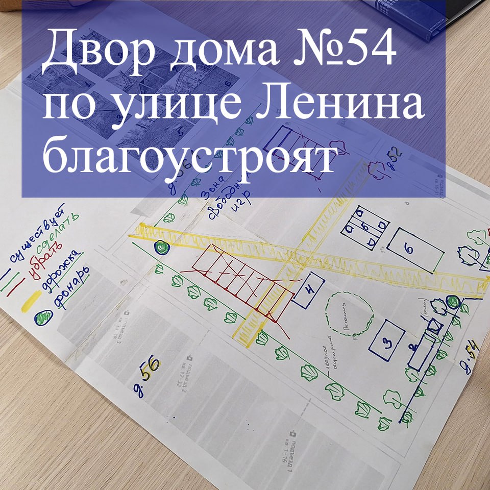 «Со старшей дома №54 по улице Ленина обсудили благоустройство дворовой территории. Двор большой, на четыре дома, поэтому действовать будем поэтапно, запланирована установка детского игрового оборудования и обустройство пешеходных дорожек. Жители, в свою очередь, собираются высадить кустарники и деревья. Постараюсь оказать всю возможную помощь»,