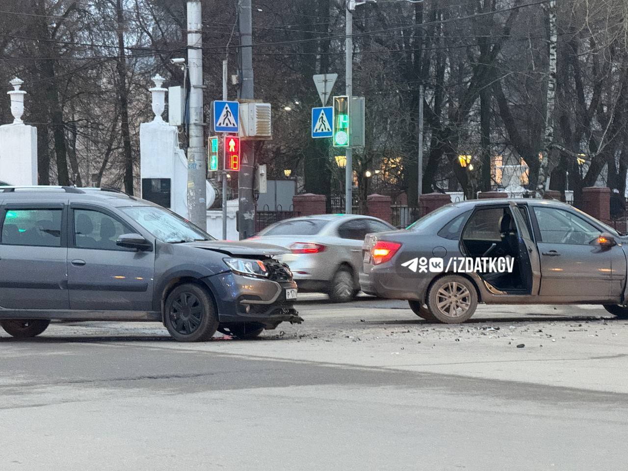 Авария произошла сегодня утром на перекрестке улиц Ленина и Дзержинского. Возле сквера Карпова столкнулись «Лада Гранта» и «Лада Ларгус».