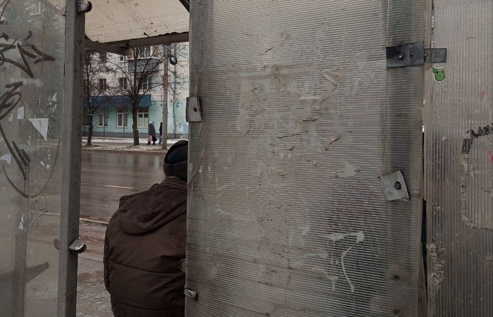 - Ремонт остановки ещё не проводили, старые листы пока закрепили в качестве временной меры. В течение недели постараемся привести в порядок эту остановку.