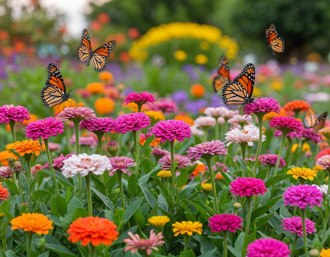 - Однолетние цветы — знойные подсолнухи, яркие циннии и легкие космеи, привлекающие насекомых.
