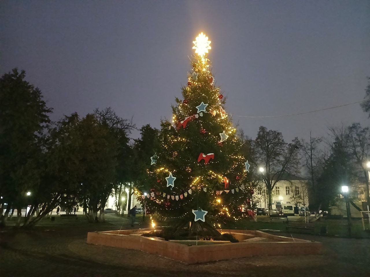 К вечеру четверга, 18 декабря, ёлка обрела свой праздничный вид. На её ветвях развесили игрушки и включили огни праздничной гирлянды.