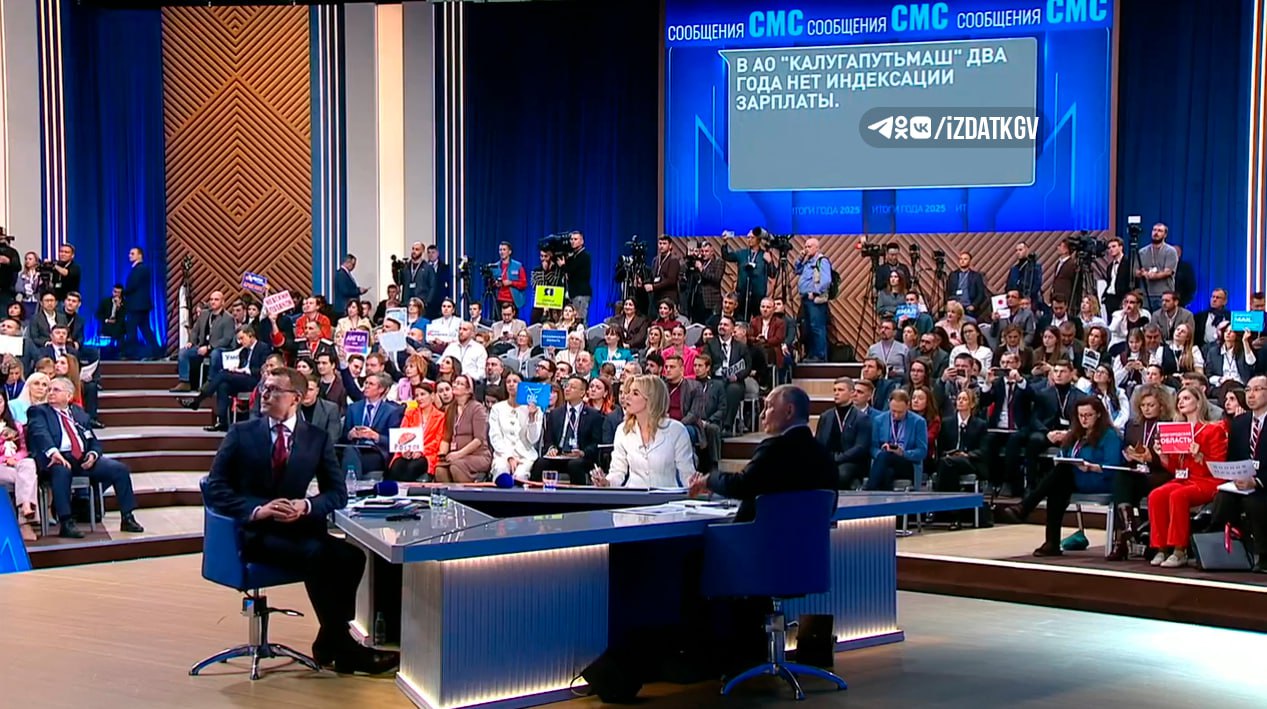 «В АО «Калугапутьмаш» два года нет индексации зарплаты» — такое сообщение появилось на экране во время Прямой линии с Владимиром Путиным