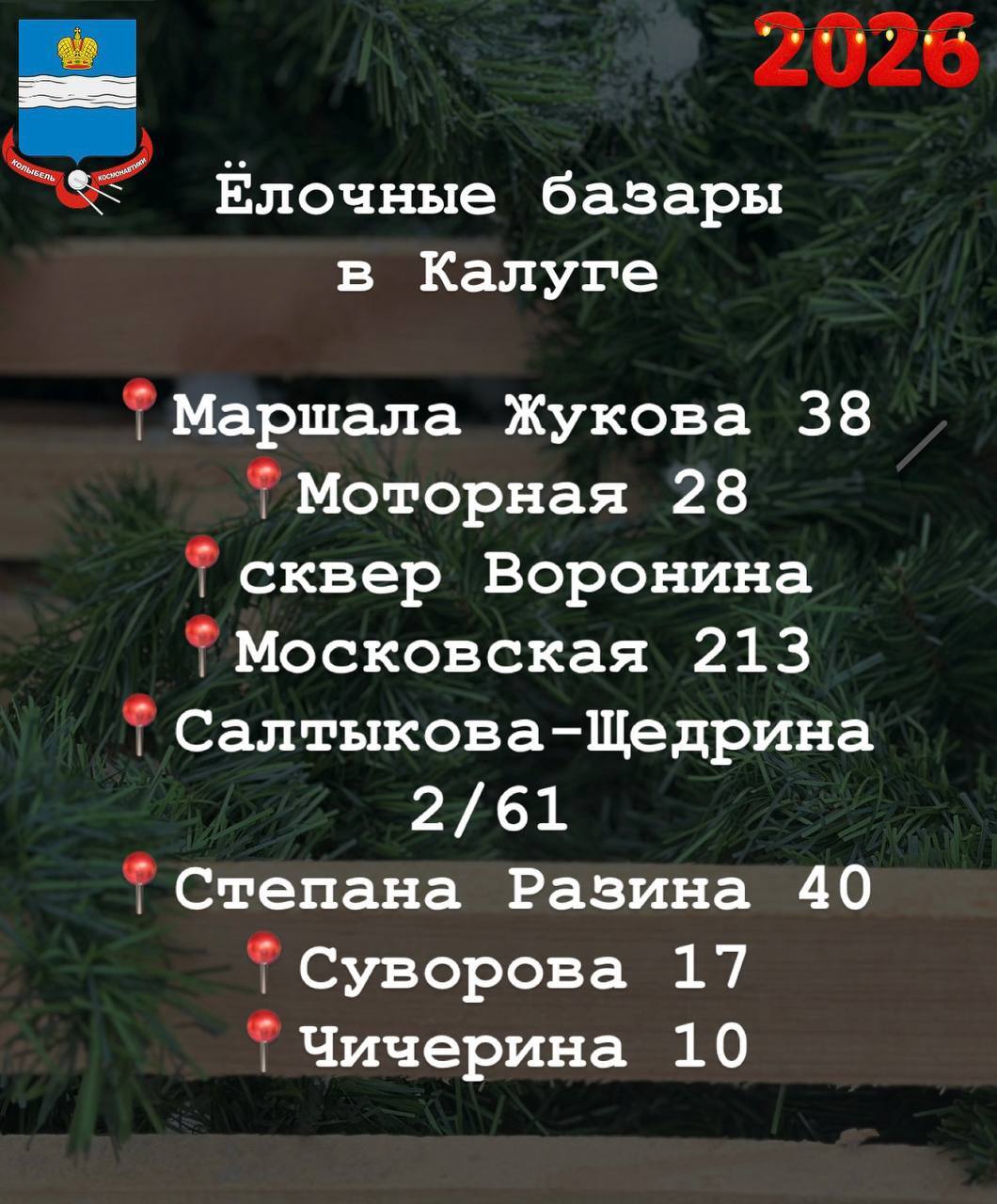 В Калуге заработали ёлочные базары. За живой ёлочкой - по адресам на картинке.