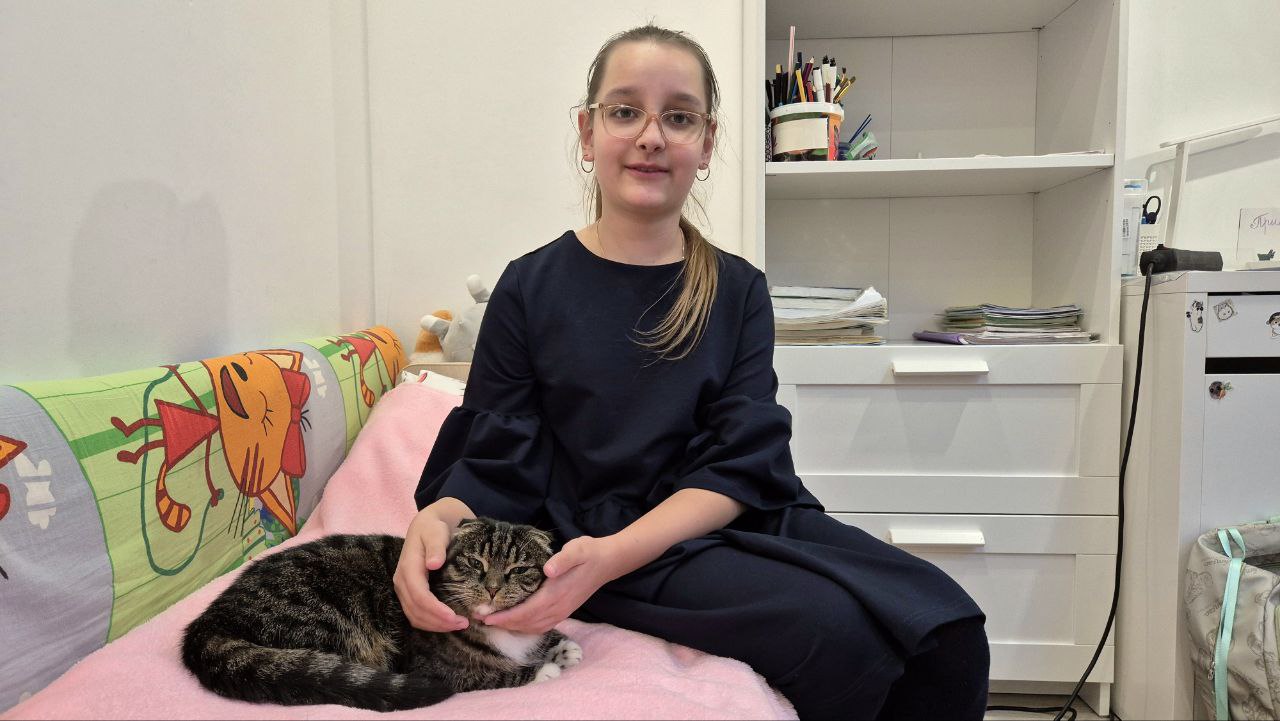 Катя с радостью показала мне своих домашних питомцев: кошку и хомячка - и хищник среди них вовсе не кошка