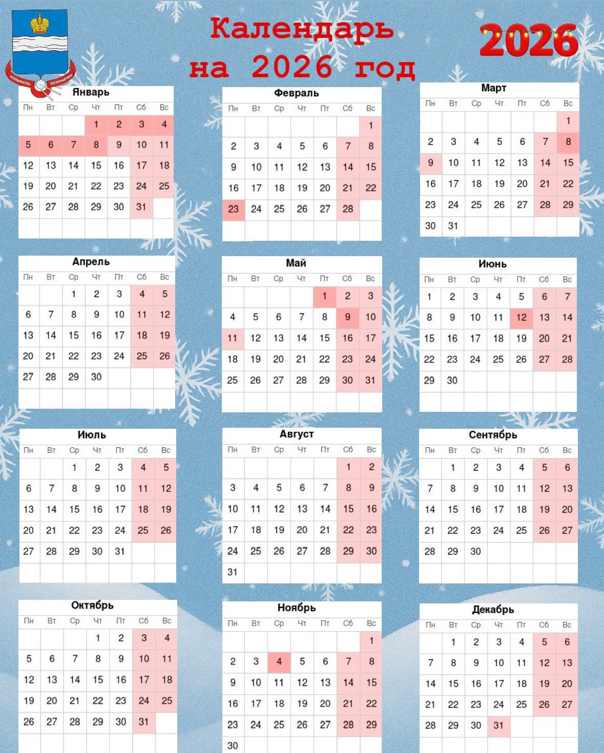 Время планировать! Чтобы вы могли заранее распределить свои силы, отпуска и семейные поездки, публикуем календарь на 2026 год — с отметками всех официальных нерабочих и праздничных дней.