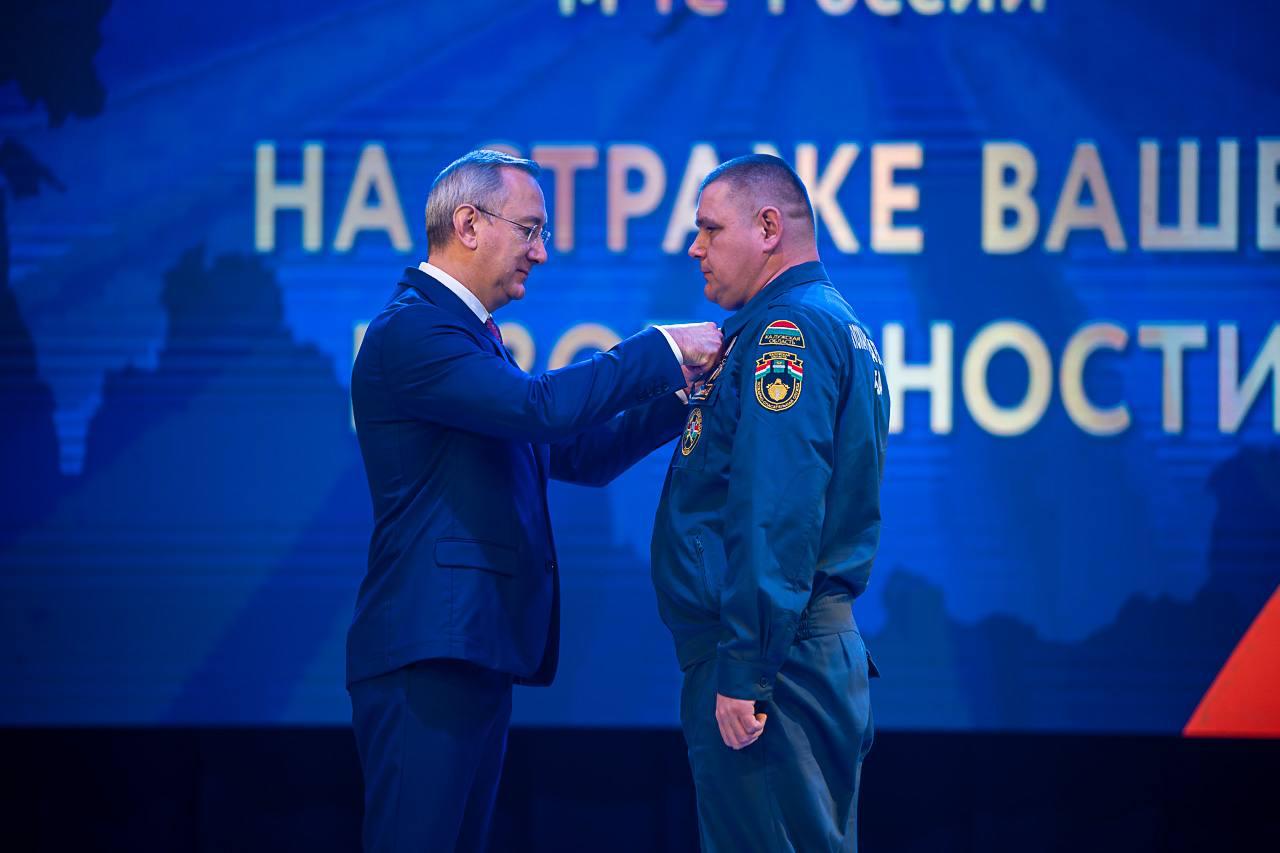 Также на торжественном мероприятии наградили медалями сотрудников МЧС, спасших 17 рыбаков на Оке. Среди тех, кто участвовал в эвакуации, были Александр Селезнев, Алексей Скоробогатов и Евгений Юраков. За отвагу и храбрость, проявленные при исполнении служебного долга в условиях, сопряженных с риском для жизни, губернатор Владислав Шапша вручил спасателям медали Калужской области «За мужество и самоотверженность».