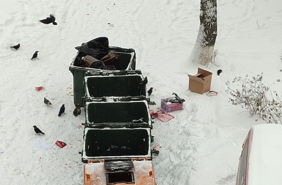 — КРЭО не собирает рассыпанный мусор вокруг и под баками. Собирается вороньё. В преддверии Нового года и ярмарки на пешеходной части Театральной эта площадка имеет крайне неряшливый вид. Просим навести порядок, - написала женщина.