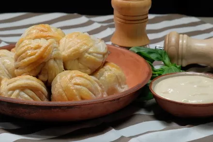 Закуска «Клубок Ниток» порадует вас хрустящей корочкой и сочной начинкой. Подавайте с чесночным соусом и наслаждайтесь миром вкусов!