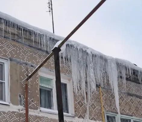 В Козельске над жилым домом нависли сосульки