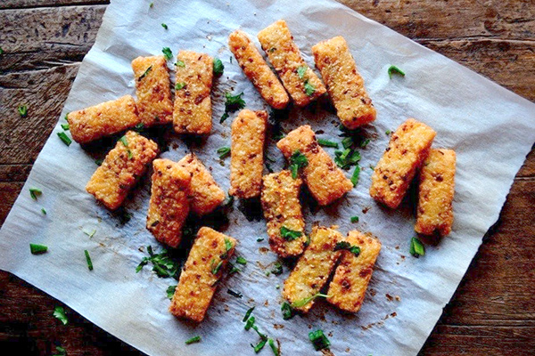 Нарезка и обжарка: нарежьте застывшую массу и обваляйте в рисовой муке. Разогрейте масло и обжаривайте до золотистости. Подавайте жирные кусочки хашбраунов с соевым соусом или острыми соусами.