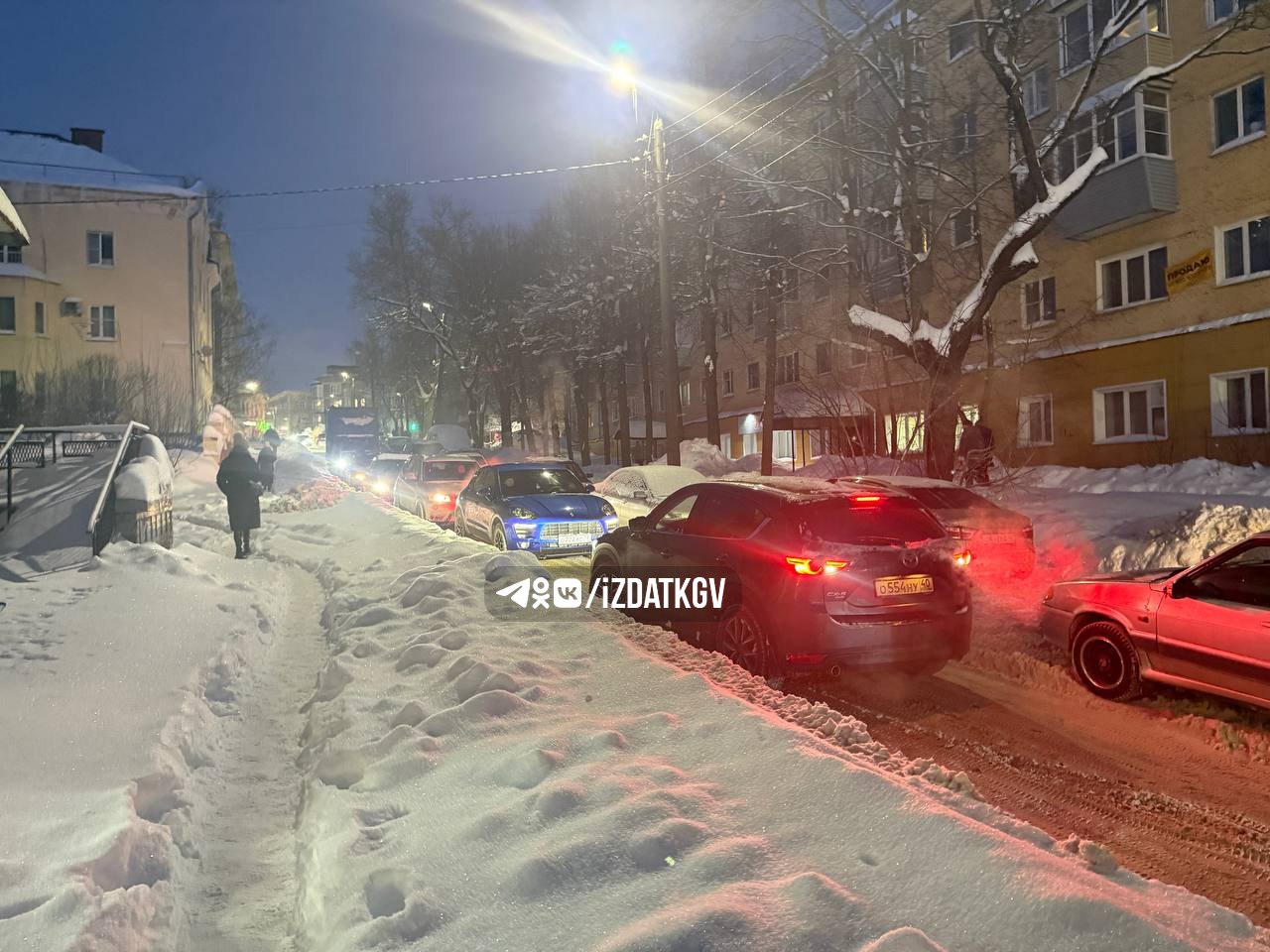 Такая обстановка на улице Луначарского, на отрезке от улицы Салтыкова-Щедрина до министерства транспорта Калужской области. В обычные дни тут две полосы, но из-за снега осталось только одна. Машины не могут разъехаться, и кому-то приходиться уступать и просто сдавать назад.