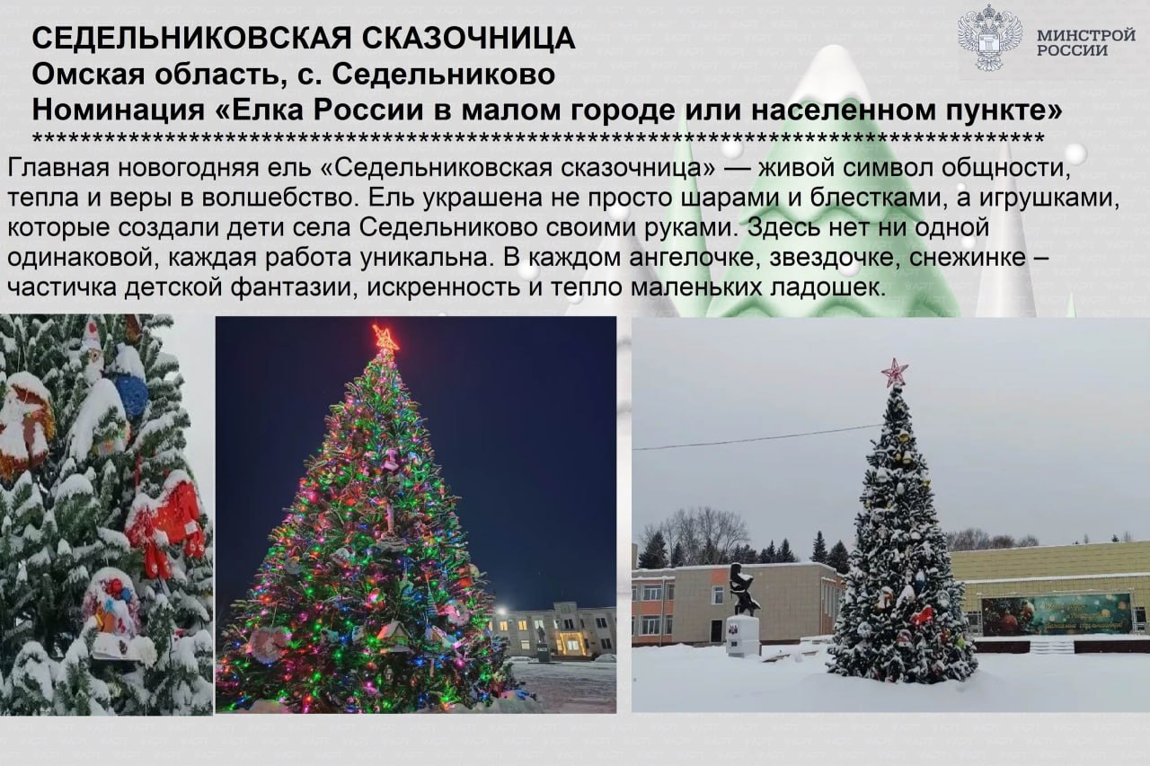 В номинации «Ёлка России в малом городе или населенном пункте» места распределились следующим образом: