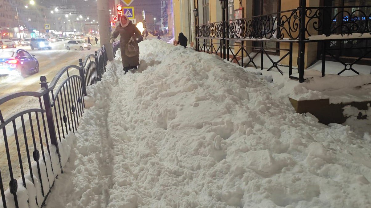 Читатель нашего издания сообщил о проблеме с уборкой снега на центральной улице города. Вечером 14 января он обратил внимание на заваленный тротуар в районе перекрестка Кирова и Ленина.