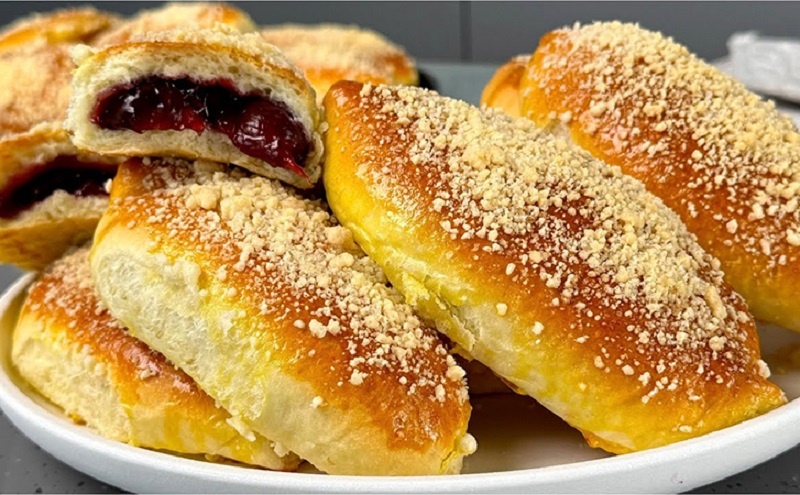 Первым делом, необходимо подготовить опару: в тёплом молоке растворить 2 ч. л. сахара и немного муки, добавить дрожжи. Опара должна постоять около 20 минут, и является признаком успеха, если на поверхности появится пена. Далее приготавливается начинка: например, черешня, очищенная от косточек и посыпанная сахаром и крахмалом — это поможет избежать излишней влаги при выпечке.