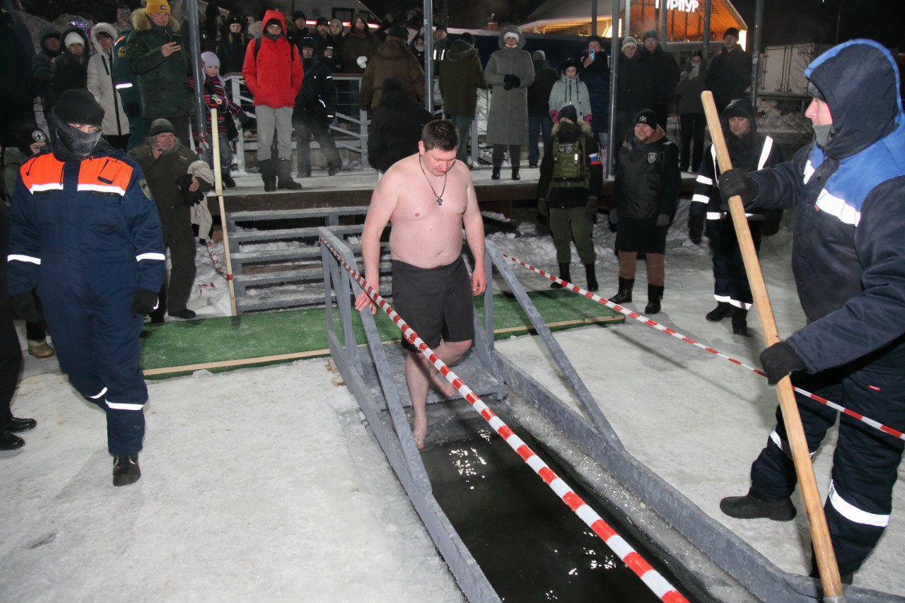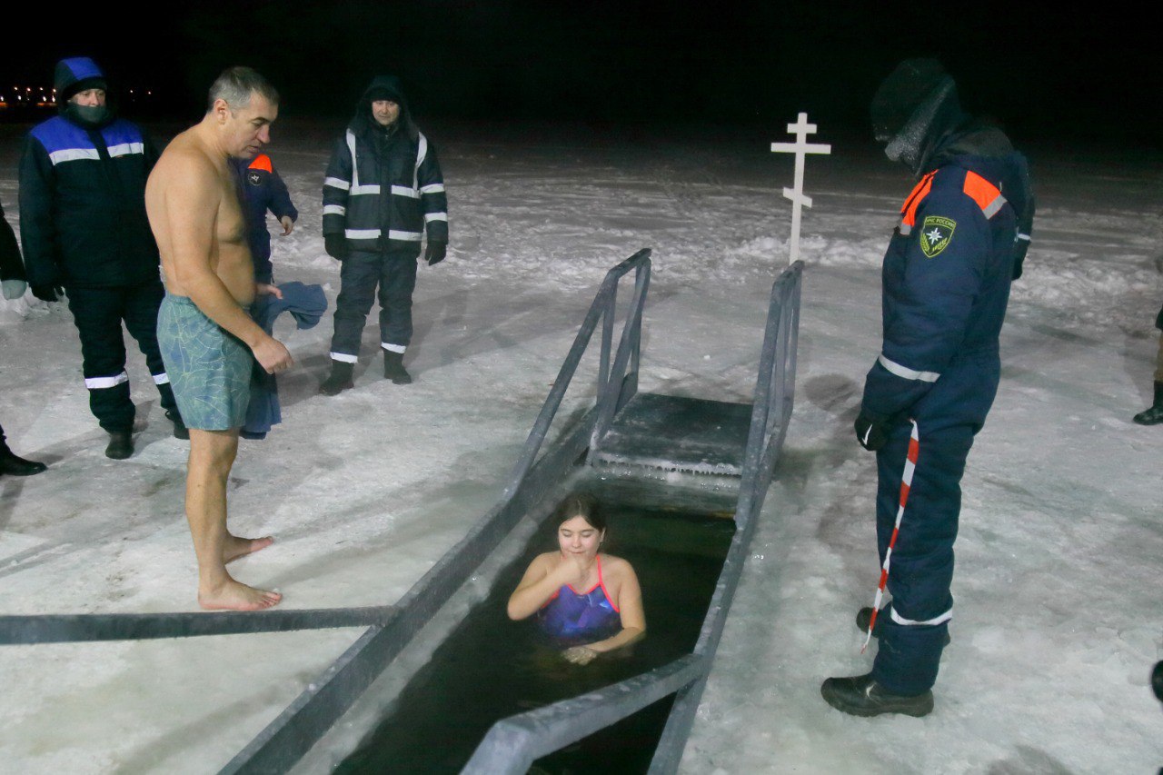 На берегу для них были оборудованы раздевалки, выныривающих из проруби поят горячим чаем. За тем, чтобы никто не пострадал, следят сотрудники МЧС, службы спасения, полицейские и медики.