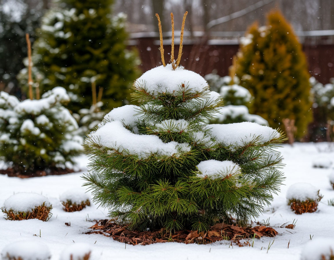Хвойные деревья подвержены стрессу не только от морозов, но и от зимнего солнца, которое может вызвать ожоги. Для их защиты используются ветрозащитные экраны. Особое внимание стоит уделить аккуратному удалению тяжелого снега с крон, чтобы избежать повреждений.