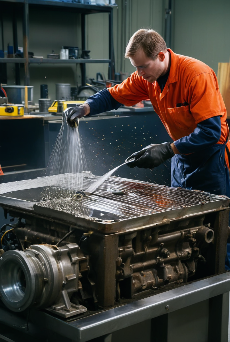 - Очистка двигателя от масла: Быстрое и эффективное удаление масляных загрязнений с блока двигателя.