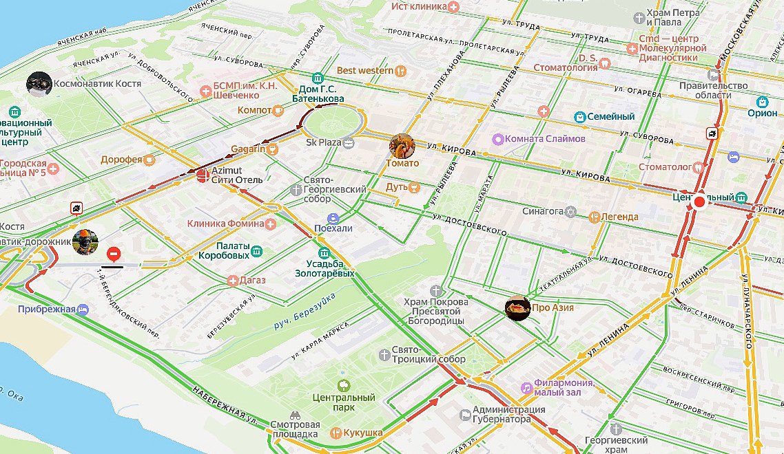 Образовалась масштабная пробка, которая протянулась через сквер Мира по улице Кирова.