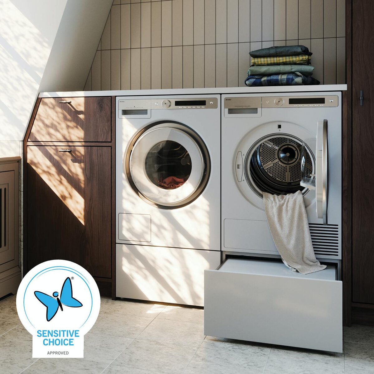 Стиральные машины ASKO стали настоящим открытием для тех, кто придерживается высоких стандартов чистоты и заботится о здоровье. Продукция ASKO удостоена знака Sensitive Choice в виде символичной синей бабочки, а это значит, что она идеально подходит для людей, склонных к аллергиям и астме.