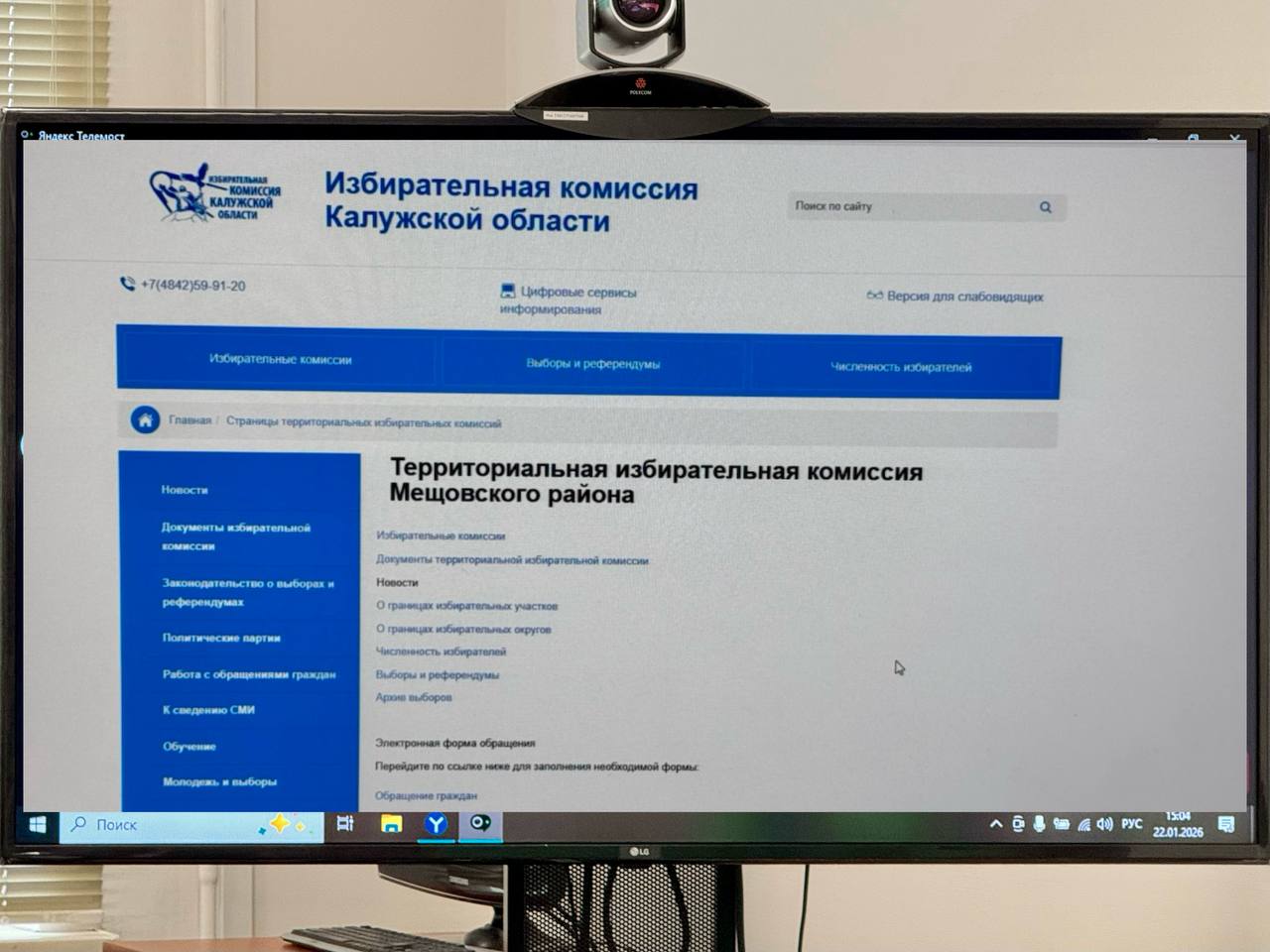 На ВКС обсудили вопросы, связанные с регламентом информационного наполнения страниц ТИК на сайте Избирательной комиссии Калужской области: