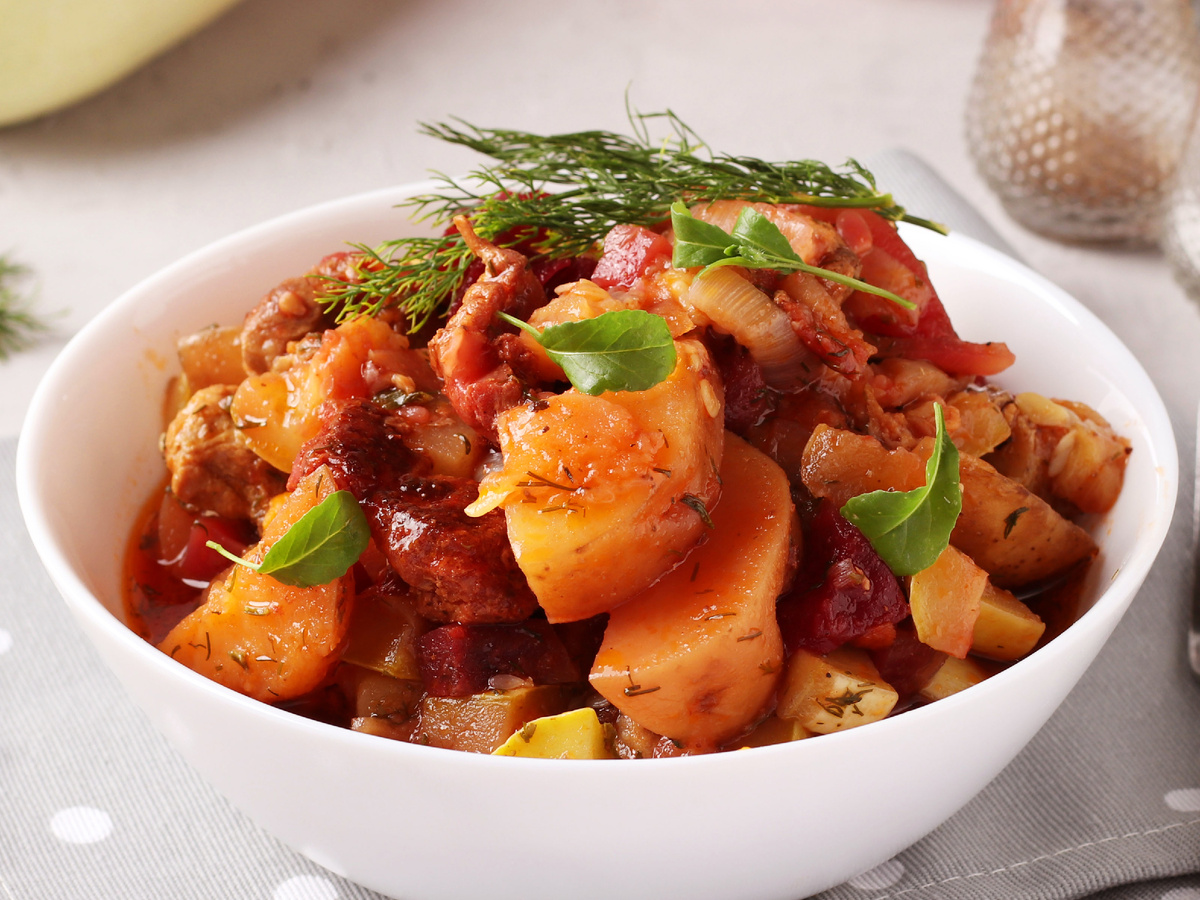 Когда рагу готово, подать его на стол. Мясо станет мягким, овощи сохранят свою текстуру, а соус будет насыщенным и ароматным.