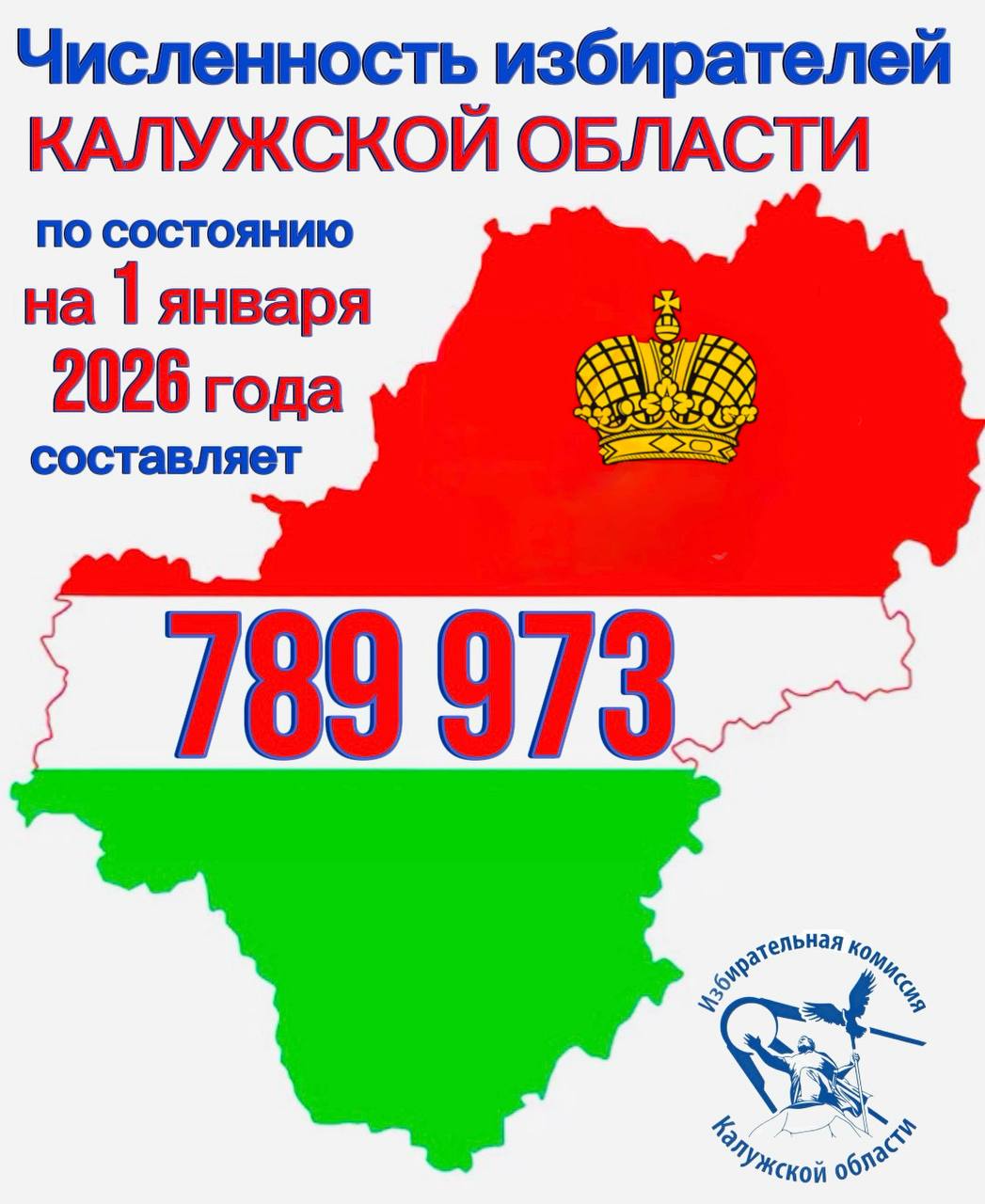 По состоянию на 1 января 2026 года численность избирателей, участников референдума, зарегистрированных на территории Калужской области, составляет 789 973человека.