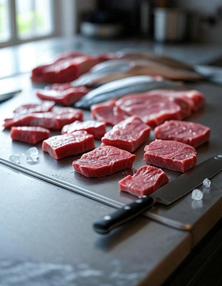 Когда мясо или рыба слегка подморожены, их структура становится плотнее, что позволяет добиться тонких, почти прозрачных ломтиков. Холодное мясо сохраняет форму, а рыба не рвёт под ножом. Благодаря этому методу даже новичок сможет нарезать аккуратно и ровно.