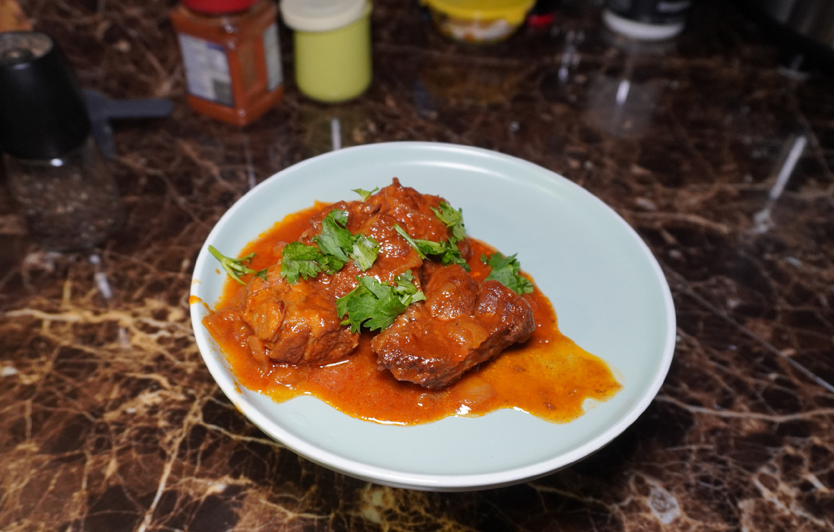 Сначала нарезать говядину на крупные куски. Если есть желание, можно добавить любимые специи: соль, черный перец, аджику, сушеный чеснок и копченую паприку. Перемешать мясо со специями и обжаривать на раскаленной сковороде с растительным маслом до золотистой корочки.Лук нарезать полукольцами. Как только мясо подрумянится, добавить лук и немного обжарить его. Затем добавить томатную пасту или кетчуп, что есть под рукой, и залить водой так, чтобы мясо слегка прикрывалось.Уменьшить огонь до минимального и тушить под крышкой, пока говядина не станет мягкой и нежной (время может варьироваться, планируйте около 2-4 часов).Готовая говядина получится невероятно нежной и вкусной. Не забудьте попробовать, пока женщина хорошо пахнет! Приятного аппетита!