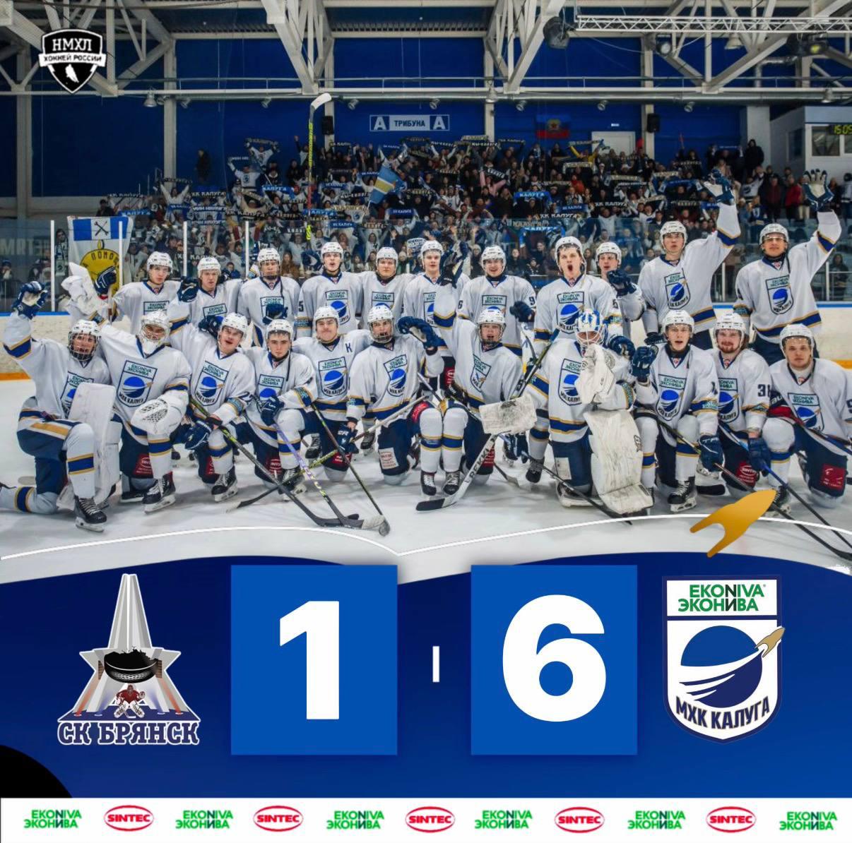 В чемпионате НМХЛ наша команда сыграла на выезде с ХК «Брянск». Первый матч завершился победой «Калуги» со счетом 5:1, а второй – со счетом 6:1.