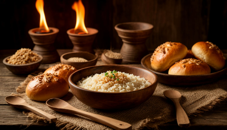 - Семья собиралась за ужином, на столе всегда присутствовала каша (чаще всего гречневая или пшенная), из общей миски, что укрепляло семейные связи в ожидании суровой зимы.