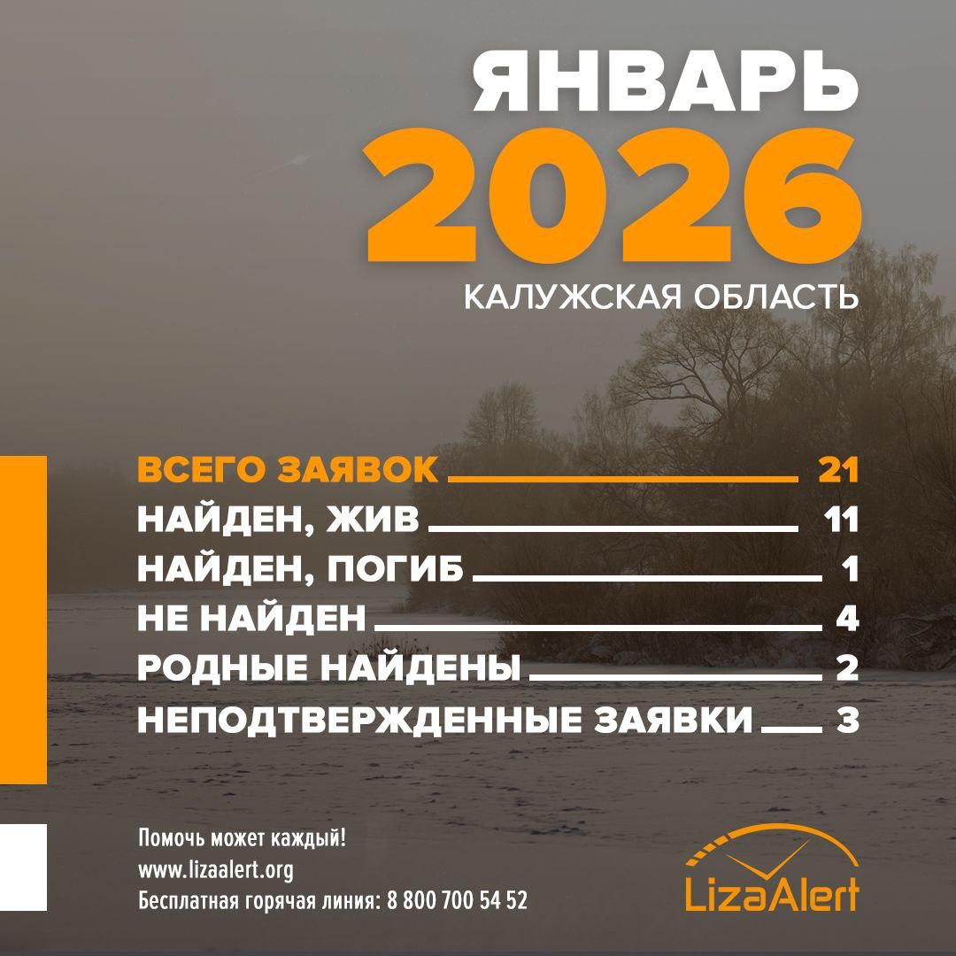 Отряд ЛизаАлерт поделился результатами работы за январь 2026 года, они отражены в карточке. Поиски тех, кто не найден, продолжаются: распространяются ориентировки, проверяются свидетельства.
