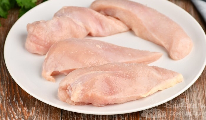 Для этого блюда понадобятся куриные бедра с кожей (4 шт.), которые можно заменить филе грудки или голень. Убедитесь, что вы удалили косточки. Приправьте мясо солью и перцем, а затем сделайте неглубокие разрезы на мясе и уложите его кожей вниз в форму для запекания.