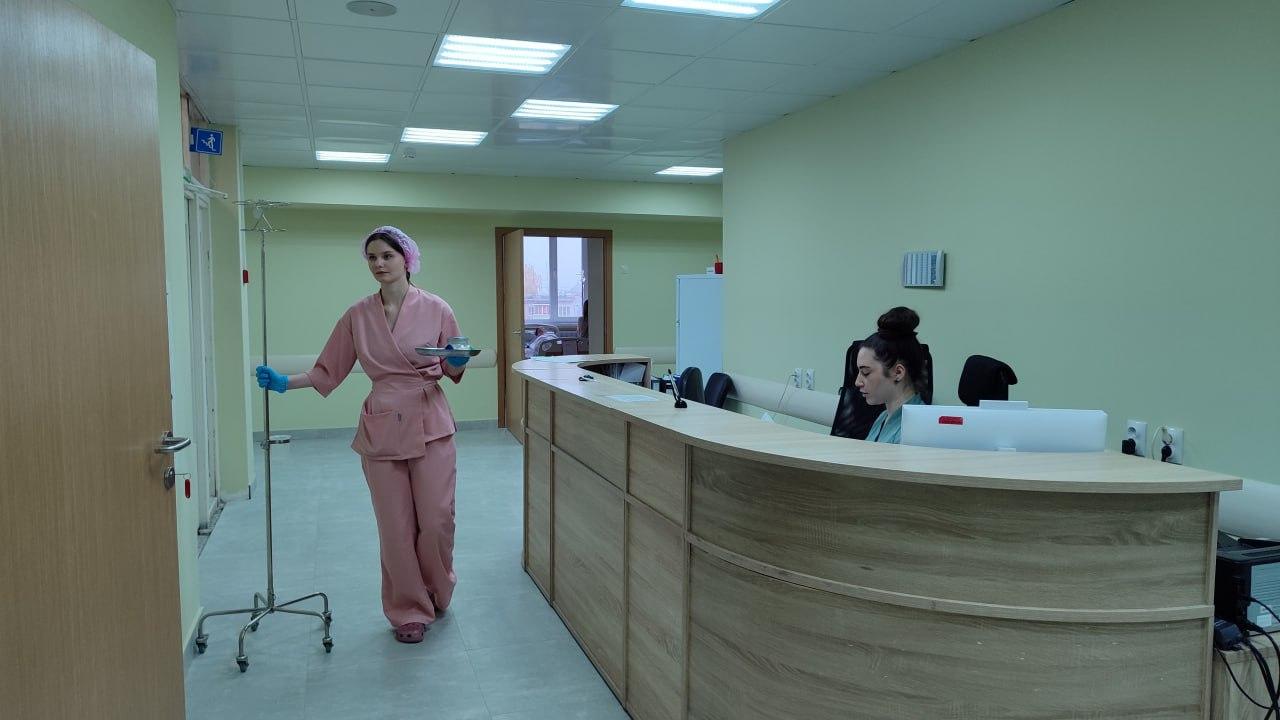 Специалисты привели в порядок эндоскопическое, гинекологическое и кардиологическое отделения, а также отделение ультразвуковой диагностики и первую хирургию. В общей сложности обновлены помещения на площади около двух тысяч квадратных метров. Кроме того, в порядок строители привели и входную группу семиэтажного корпуса.