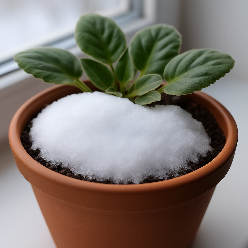 Принцип этого метода прост: на поверхность почвы в горшке укладывают чистый снег, который постепенно тает, увлажняя землю.