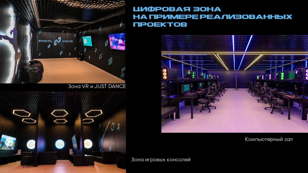 Участок выбрали в Заовражье. Фиджитал-центр включает в себя модульное здание на 400 квадратных метров, в котором предусмотрены четыре зоны, в том числе зона с игровыми приставками и консолями. Общая пропускная способность здания — 54 человека ежечасно.