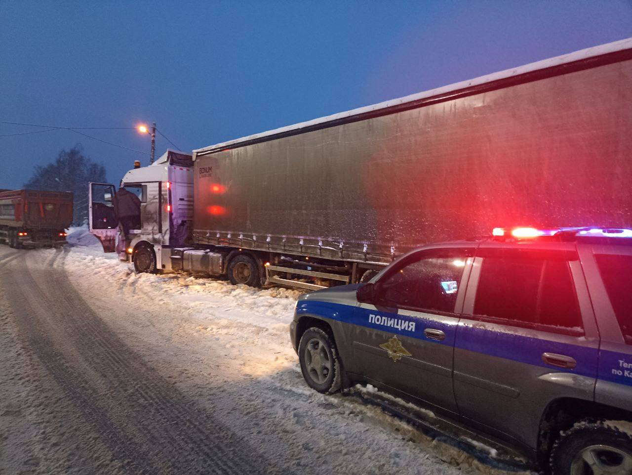 В непростую ситуацию попал водитель фуры. Застрял он ещё с ночи в районе деревни Дроздово. Его при патрулировании обнаружили сотрудники Госавтоинспекции Жуковского округа. Конечно, не проехали мимо и помогли!