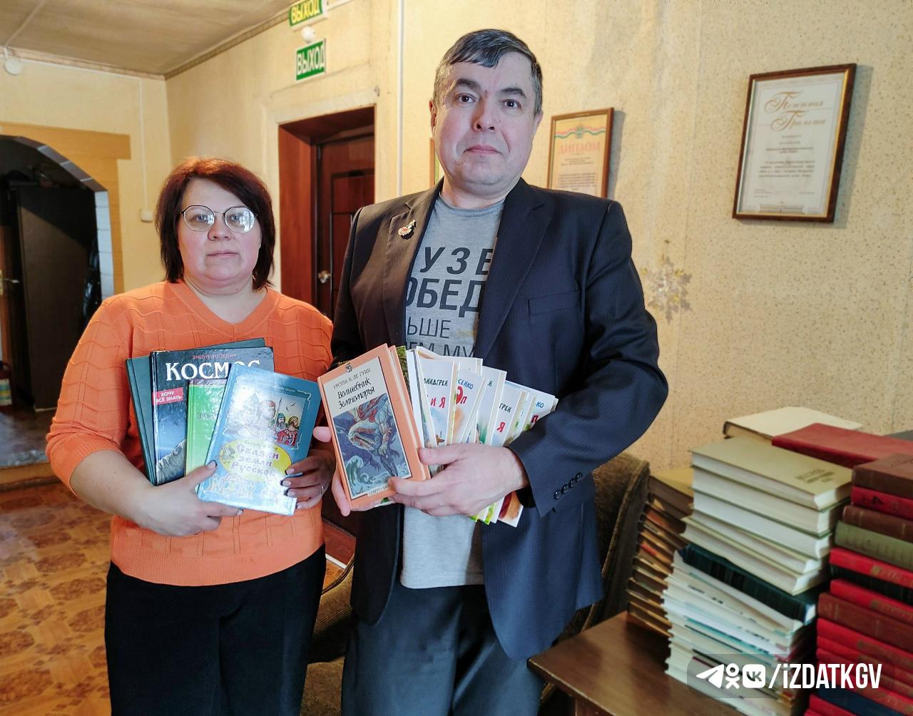 Вскоре присоединились и сотрудники Жиздринского музея. Директор Валерий Прокопов и хранитель фондов Инна Симачева принесли почти два десятка книг.